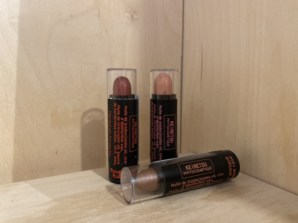 Ingrédients: Huile de jojoba, cire d'abeille, huile de ricin, beurre de karité, vitamine E, mica.